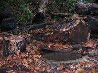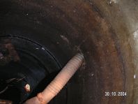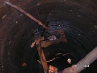 Schächte am Eingangsbereich, geöffneter Schacht (rechtes Bild) scheint ein Pumpenschacht zu sein, Steuerung der Pumpe wahrscheinlich mit Schwimmer