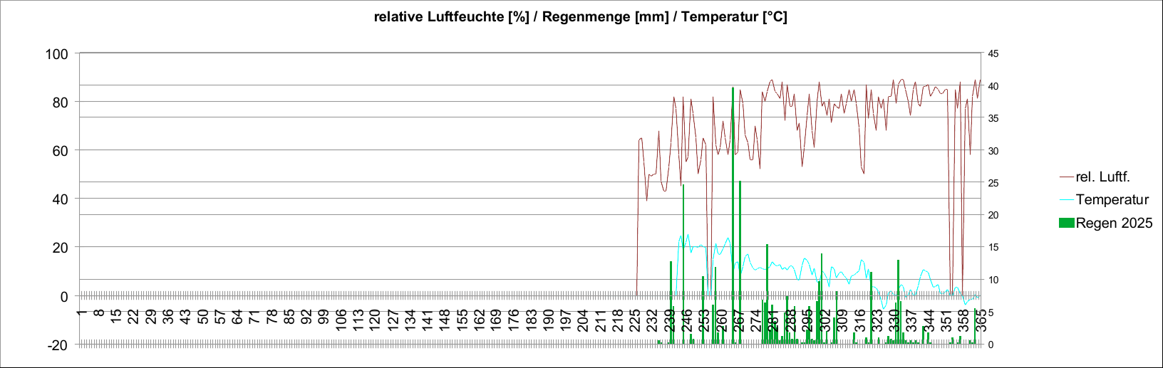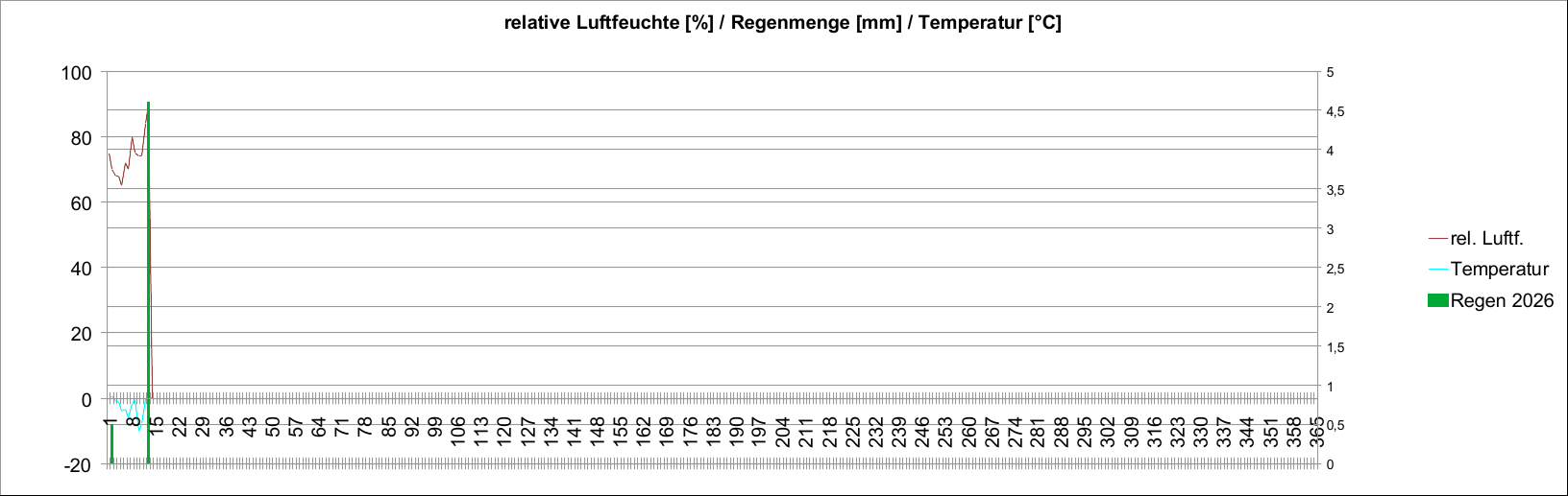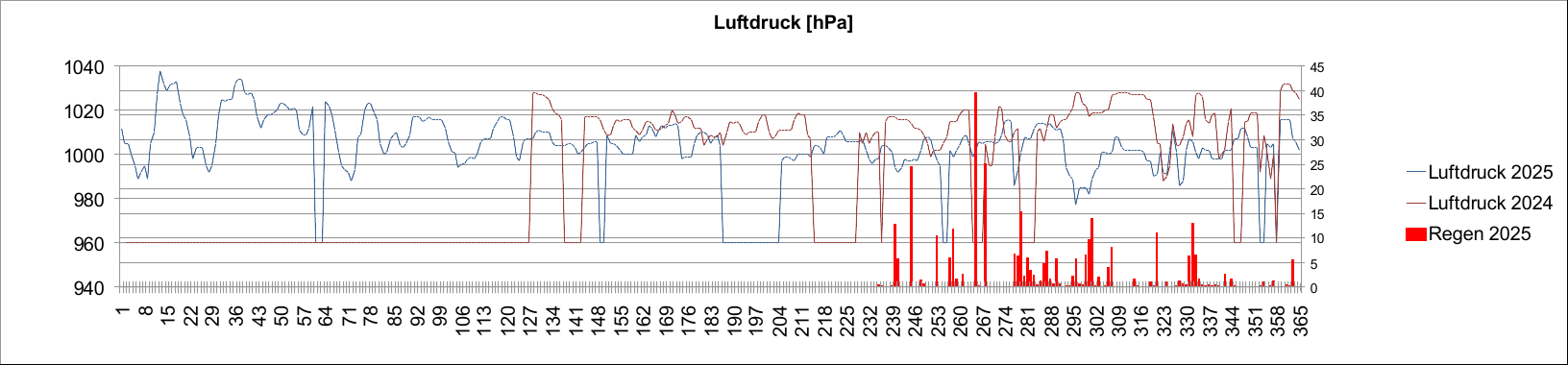 Rückblick (Luftdruck, Niederschlagsmenge, relative Luftfeuchte, Temperatur)