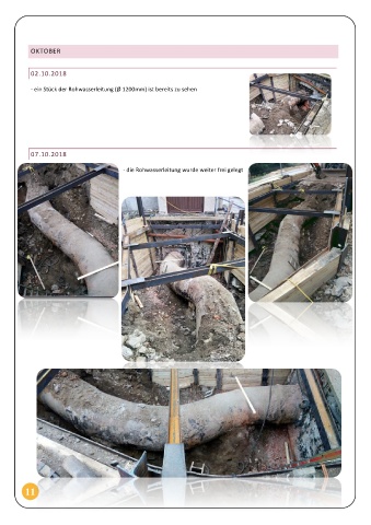 OKTOBER 02.10.2018 - ein Stück der Rohwasserleitung (Ø 1200mm) ist bereits zu sehen 07.10.2018 - die Rohwasserleitung wurde weiter frei gelegt 11