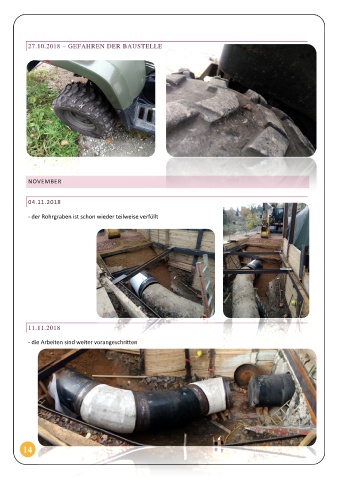 27.10.2018 – GEFAHREN DER BAUSTELLE NOVEMBER 04.11.2018 - der Rohrgraben ist schon wieder teilweise verfüllt 11.11.2018 - die Arbeiten sind weiter vorangeschritten 14