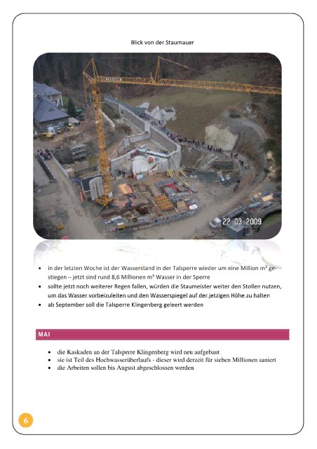 • die Kaskaden an der Talsperre Klingenberg wird neu aufgebaut
