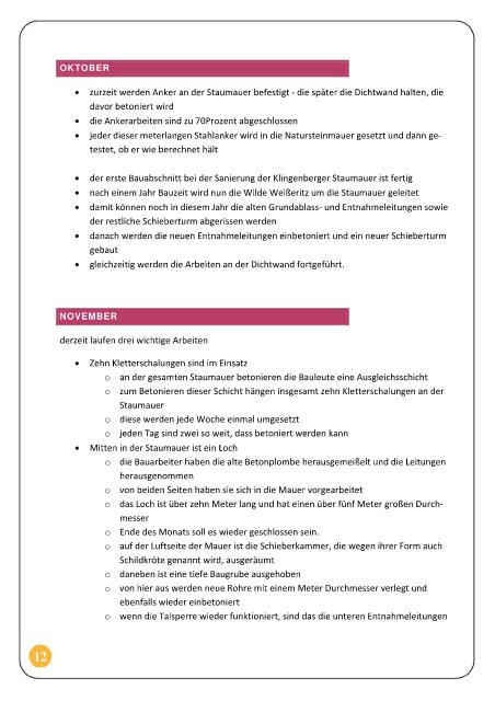 • der erste Bauabschnitt bei der Sanierung der Klingenberger Staumauer ist fertig