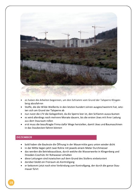 • es haben die Arbeiten begonnen, um den Schlamm vom Grund der Talsperre Klingen-