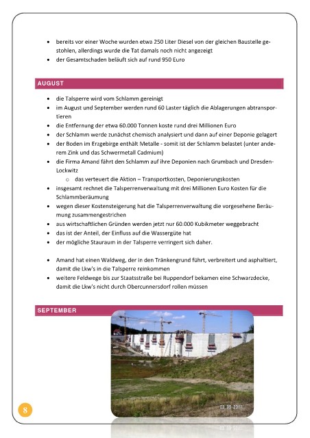 •  im August und September werden rund 60 Laster täglich die Ablagerungen abtranspor-
