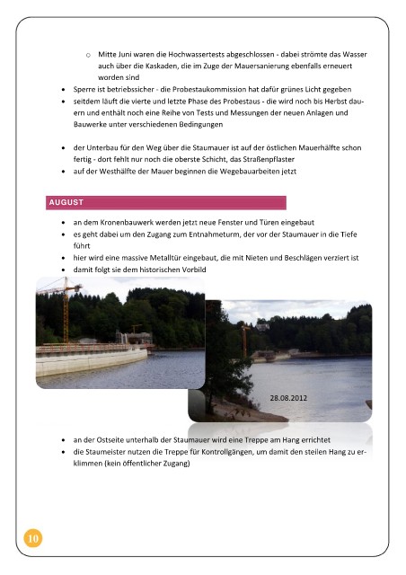 • an der Ostseite unterhalb der Staumauer wird eine Treppe am Hang errichtet