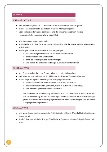 • seit Mittwoch (04.01.2012) wird die Talsperre wieder mit Wasser gefüllt