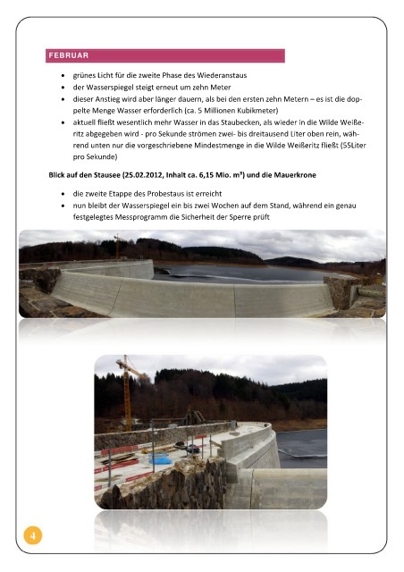 • aktuell fließt wesentlich mehr Wasser in das Staubecken, als wieder in die Wilde Weiße-