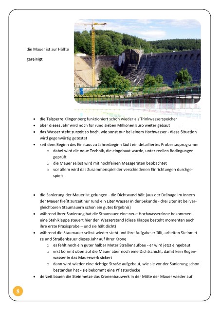 • die Talsperre Klingenberg funktioniert schon wieder als Trinkwasserspeicher