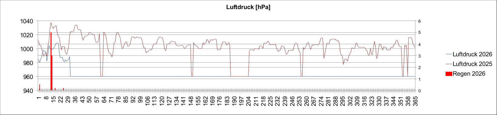 Rückblick (Luftdruck, Niederschlagsmenge, relative Luftfeuchte, Temperatur)